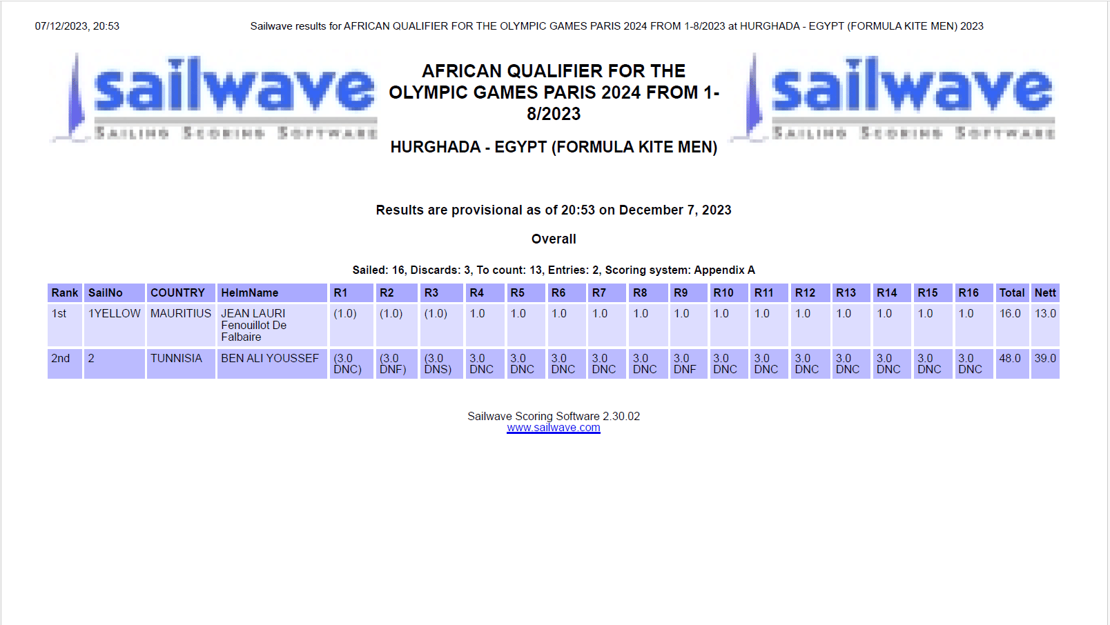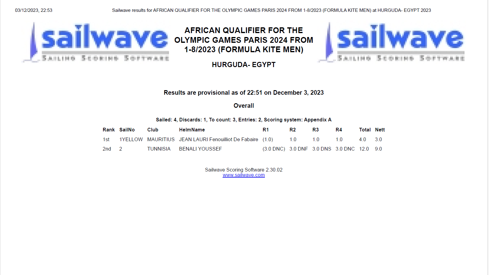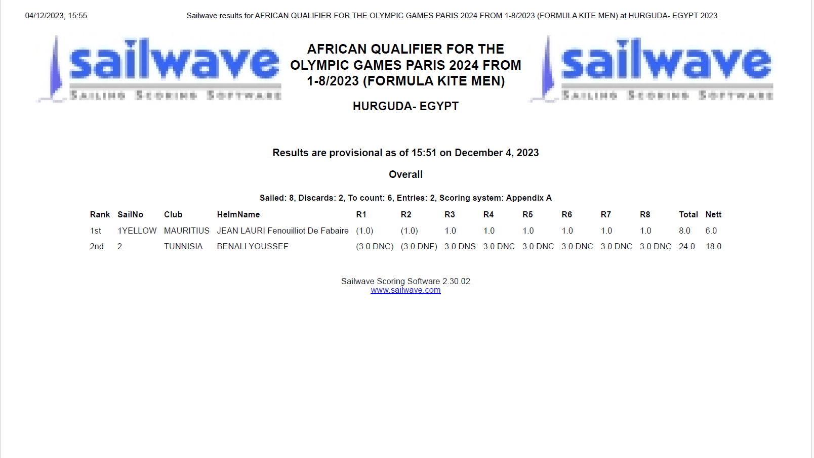 Qualifier Final Results [Race Day 5] 07-DEC Results [Race Day 4] 06-DEC Results [Race Day 2] 04-DEC Results [Race Day 1] 03-DEC Results